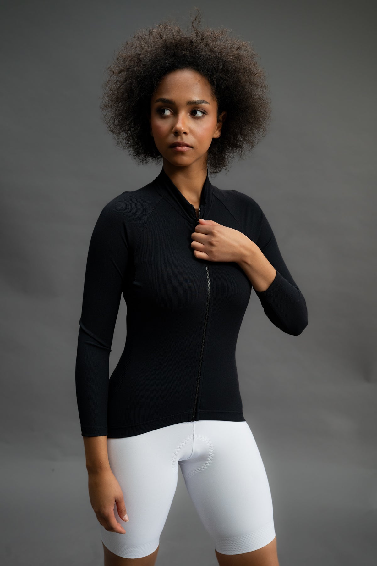 Wykonana z wysokiej jakości włoskiej dzianiny Primo (200 g/m², 92% poliamid, 8% elastan) – mocnego, zwartego materiału o prążkowanej strukturze, który: