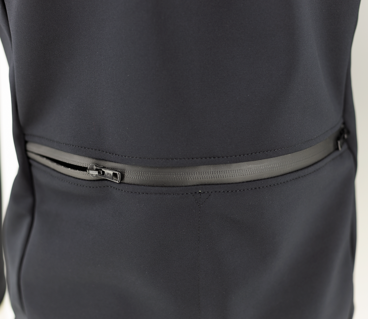 - Wodoodporny dwustronny zamek na tyle zapewniający wygodny dostęp do kieszeni z tyłu