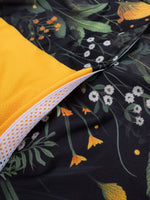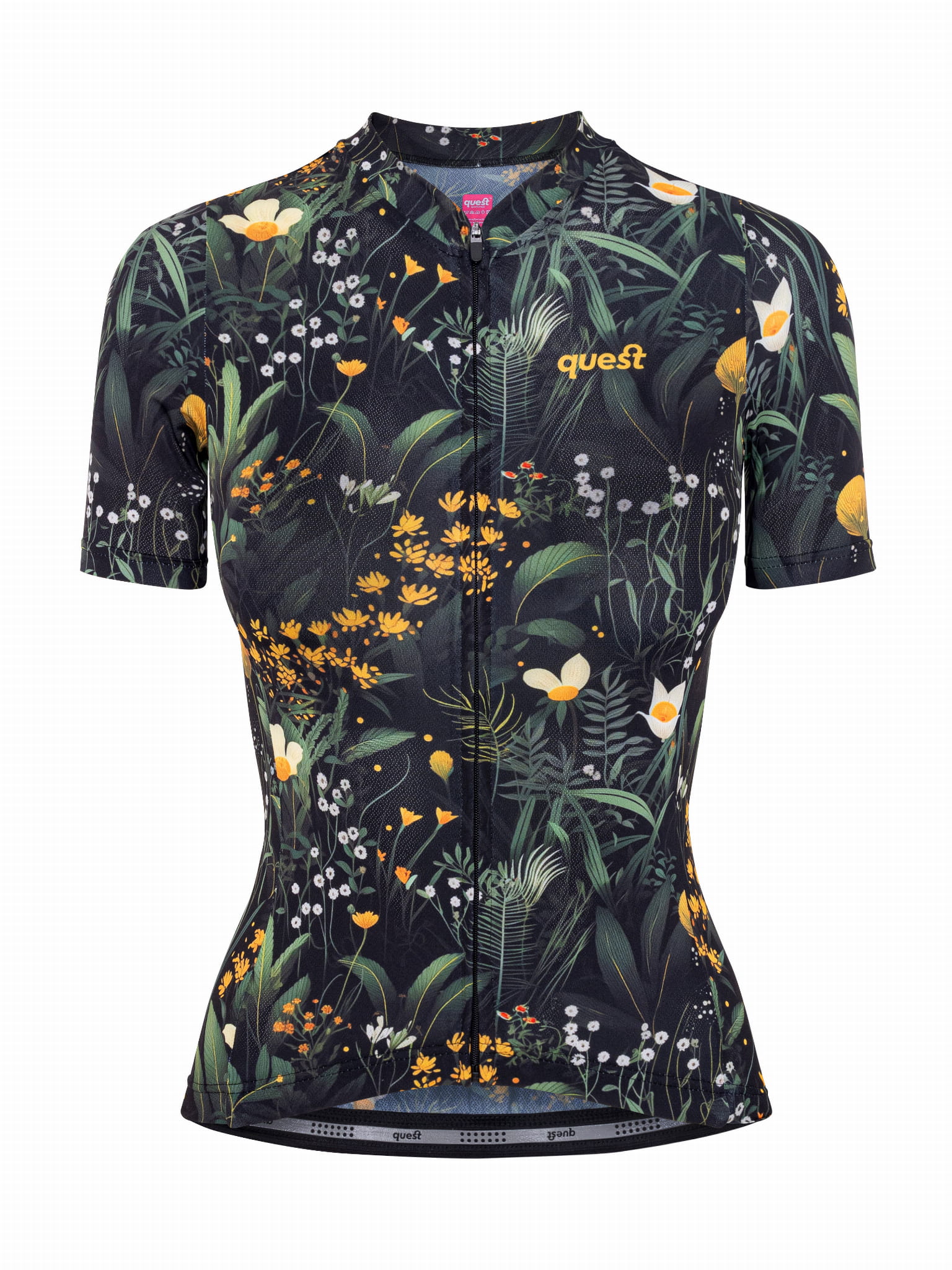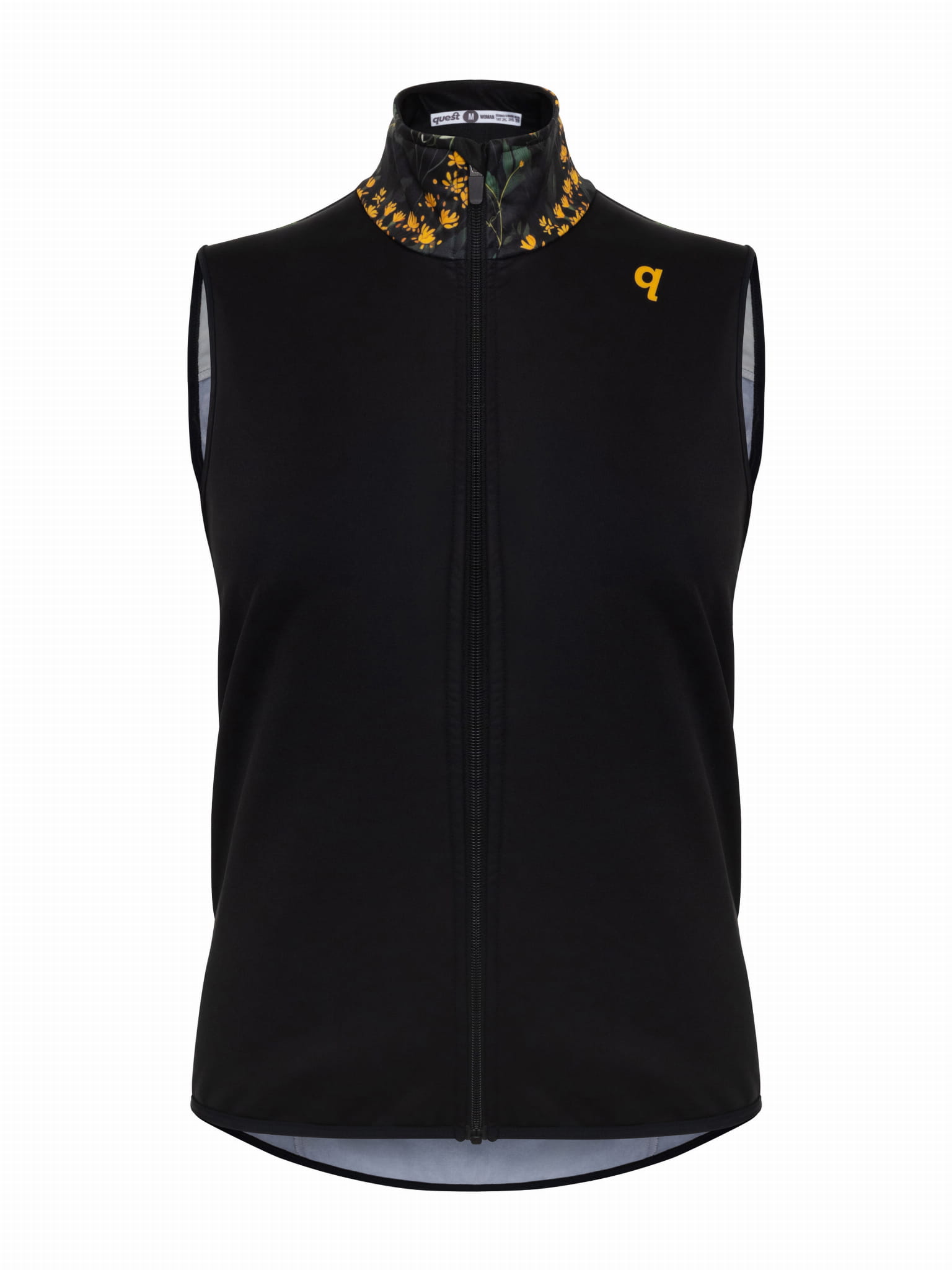 The Quest Herbal is a women's cycling vest that combines weather protection technology with a unique design inspired by nature . The dominant black is subtly broken up by a wildflower motif – deep green and sunny yellows give it a unique character.